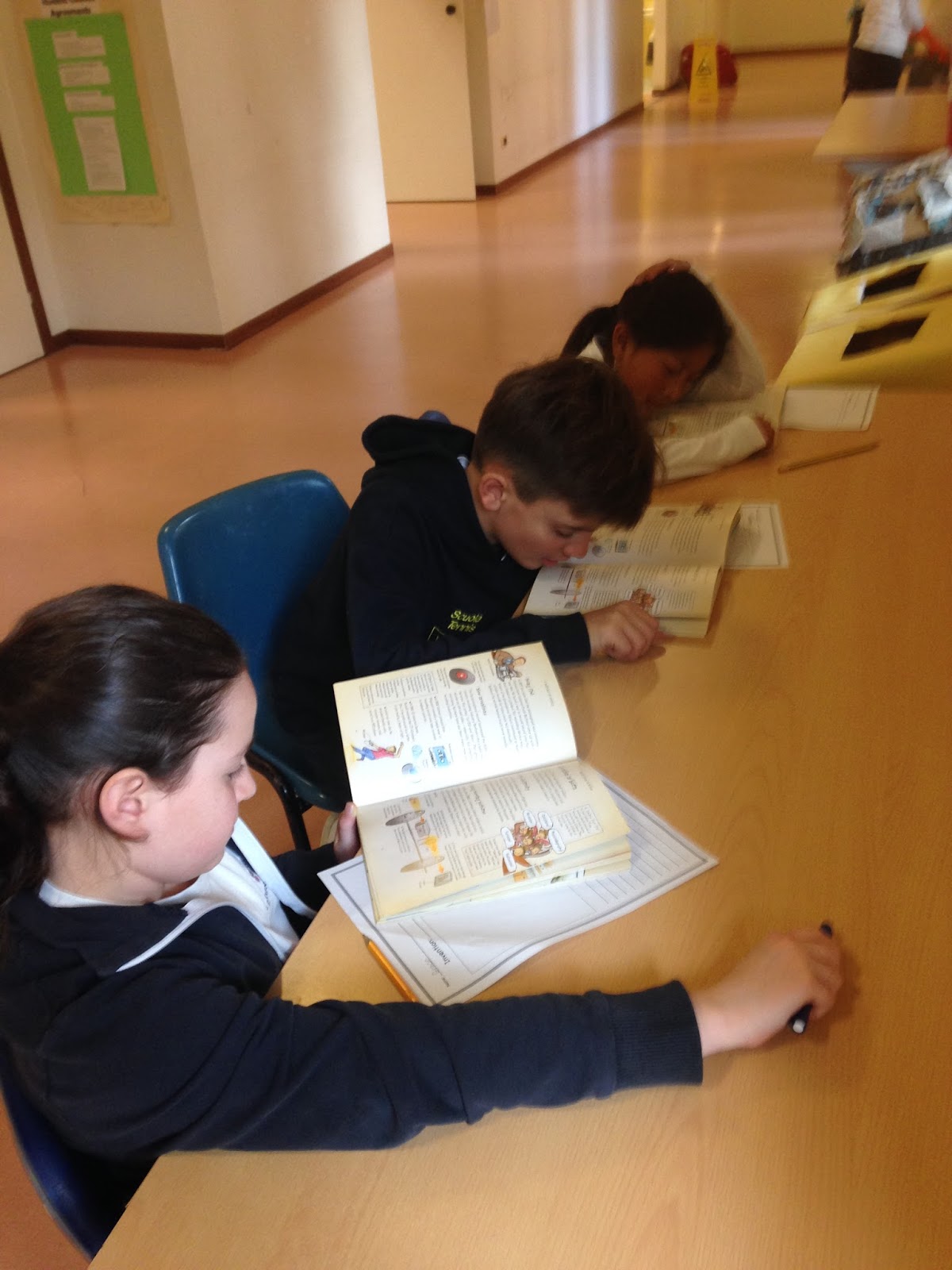 Students were divided into two teams today: a technology team and a medicine team. Within each team, the students then, in groups of 3, choose an invention within their category to research. The inventions of choice ranged from: technology --> tv, telephone, computer, and medicine --> surgery, glasses, x-ray, band-aids. The students then found their working location, used shared reading to find out about their invention, created a brainstorm web with facts about their invention, then took this information and wrote a paragraph. It will be fun to hear about these various inventions when they present their information at a later date.